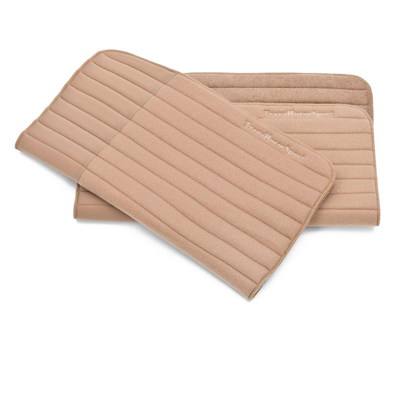 Highly shock-absorbent and extremely soft pair of leg wraps. The inner is cotton and the outer has foam-memory ability. The outer section at the hoof is made of an extremely elastic and tough artificial fibre and allows bandaging over the hoof.