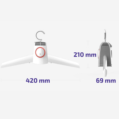 SpeedyDry comes with Cold wind and hot wind two gear temperature adjustment. It automatically enters the hot air mode when the machine is turned on. The clothes are dried quickly with warm air at 50°-60 °. After 3 hours, the clothes will automatically switch to the cold air state (can also be manually switched to cold air at any time).